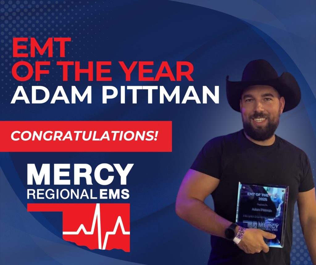 Mercy Regional EMS is proud to recognize Adam Pittman as the 2025 Emergency Medical Technician of the Year. Adam consistently goes above and beyond in his work—both on and off the job. Fellow team members describe him as someone they can count on to remain competent, calm, and steady in high-stress situations, bringing professionalism and […]